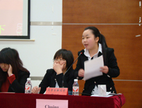 选手陈雅、邹雨柔在对方发言时,多次总结问题,抓住疑点盘问对方,陈词时气势强大,回答问题时沉着冷静,化难为易,唇枪舌战之余尽显风采,陈词完毕获得全场热烈的掌声。