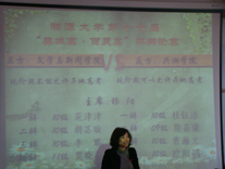 比赛的最后,两位观众对双方的辩手进行了简单的提问,之后是公共管理学院梁教授对本场比赛进行点评。她首先对本场比赛的给与了较高的评价,但同时指出美中不足的是双方对论点的核心没有进行较深的挖掘。最后,经过评委的认真裁定,51大赛