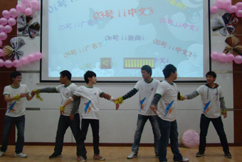 活动以一段活泼、滑稽的视频作为开场,直奔女生节的主题,引起了同学们的热烈反响,营造了良好的氛围。主持人杨白首先公布了各班级作品在腾讯微博上受关注的情况,11广电一班以501票位居第一。 比赛最终结果将结合微博投票、评委打分和现场大众评审投票决定。