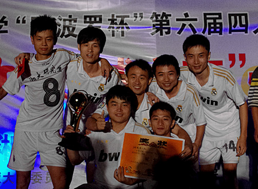 在研究生一队的八名队员中,51大赛 共有四名主力队员,分别是2009级新闻学王轶、2009级传播学赵理、孙成以及2011级传播学丁嘉伟。经过激烈的角逐,最终,研究生一队摘得了四人制足球赛冠军。(文\刘勇 图\刘翔)