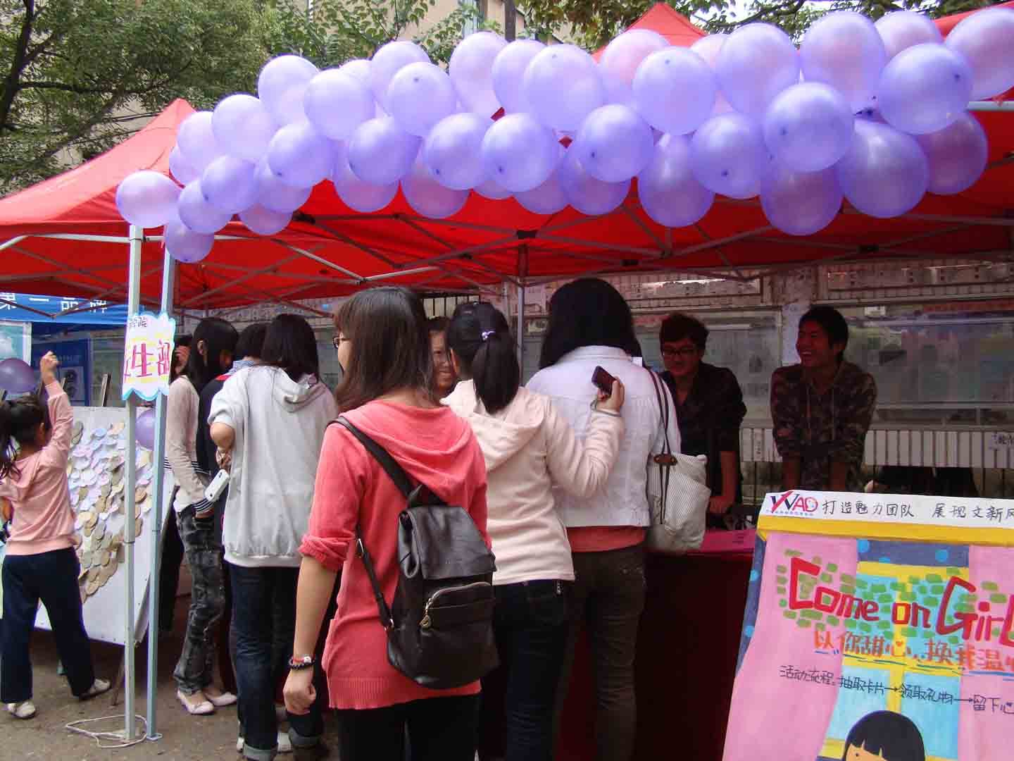 团委学生会女生部举办的以“come on girls,以你甜心,换我温心”为主题的抽奖活动在北苑举行。本次活动旨在军训前做好女生防晒、皮肤护理知识的宣传,给予女生以服务与关爱。