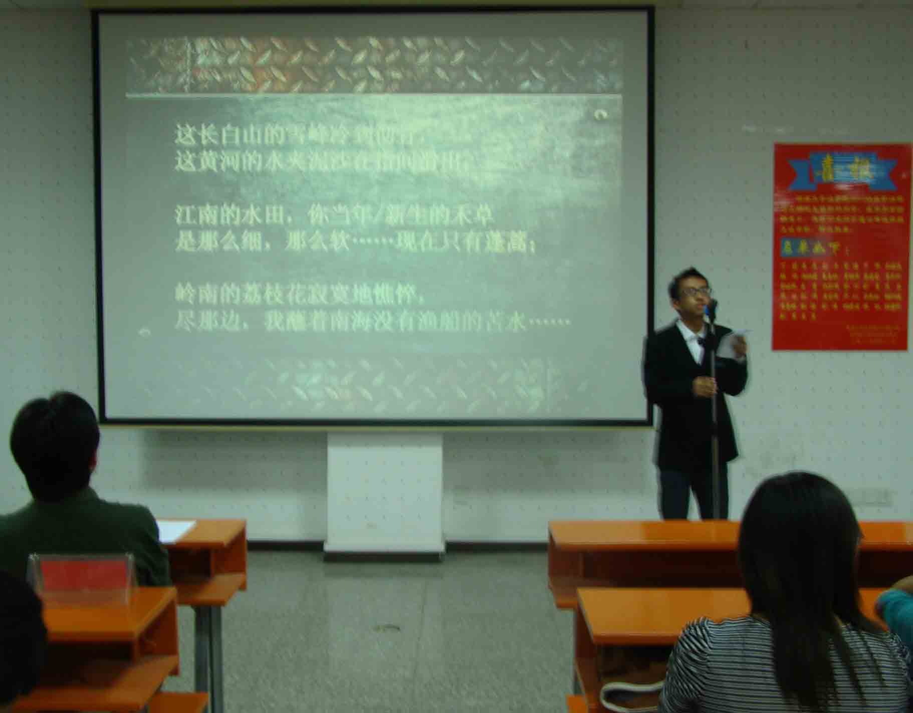 会有更完美的表现。最终,本次大赛9号选手秦毅以9.24高分获得冠军,3号选手于淼淼与4号选手来自11广电1班的马歌同获二等奖,三等奖由6号选手卫雨婷、10号选手程羡宁、11号选手昂晋以及12号选手舒静婷获得。此外,10级汉语言文学一班和11级广电二班凭借其严格的组织性、积极的参与精神荣获大赛优秀组织奖。