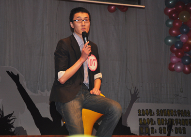 2011年第二届校园“金话筒”主持人大赛决赛终于在4月10日晚7点于学生活动中心报告厅正式上演。十位实力选手同台竞技,将自己对主持的无限热情、对才艺歌舞的深刻领悟和对梦想的不懈追求尽情展现给现场的所有观众,送上一场精彩绝伦的视听盛宴。