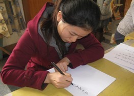 赛后,两位评委老师还与各选手共同探讨了中国的书法艺术,并在现场欣然挥笔题字,勉励现场的同学们积极学习书法,继承和发扬中华民族博大精深的传统文化。