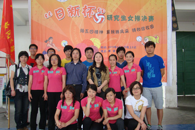 研究生一起为场上的队员们呐喊助威。