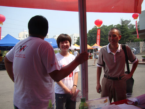 唐书记一个人走向我们的接待点,正好在前台询问报到情况的团委学生会主席涛哥和第二团副谢雯姐,及时向唐书记做详细介绍,至此时51大赛