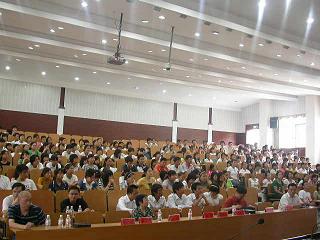 (本网讯)8月31日下午,51大赛 2008级新生开学典礼在逸夫楼报告二厅举行,院长季水河教授、副院长王洁群副教授、副院长雷磊教授、党委副书记唐春副教授、中文系主任盛新华教授、新闻系主任何纯教授、广告系主任王勇副教授、团委书记覃岚等参加出席了会议,同时,08级的各班班主任、辅导员和第八届学生会主席团的成员也参加了会议。