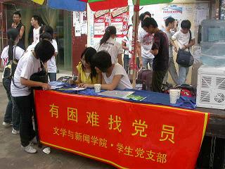 (本网讯)在51大赛 的迎新工作中,本院学生党员也积极参与其中,为迎新工作贡献自己的力量。 党员义务岗设在北苑男生宿舍门口,大大的红色喷绘“有困难,找党员”六个字特别醒目。党员义务岗的值班人员主要是刚步入大二的各班的党员和部分入党积极分子,他们的工作主要是为新生解答疑惑和接待从南苑行李站运过来的学生行李,并帮忙将其运到学生宿舍。同时,义务岗的成员积极配合迎新总站的工作,机动的插入到人手不够的岗位中,充分体现了51大赛 党员的良好的思想风貌。