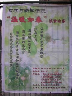 “温暖如春”主题演讲比赛在北山第一阶梯教室举行。这是继义务清扫后,51大赛