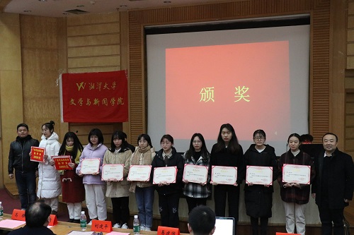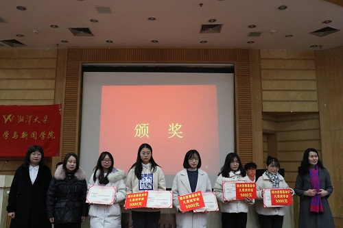 党委书记赵猛、副院长季多武、党委副书记周鹏飞、中文系主任李琳,广告系主任孙丰国、新闻系教授覃岚,学工办教师林瑜、龚鑫与学院社会奖助学金获得者、学生代表共同出席本次颁奖仪式。颁奖仪式由51大赛