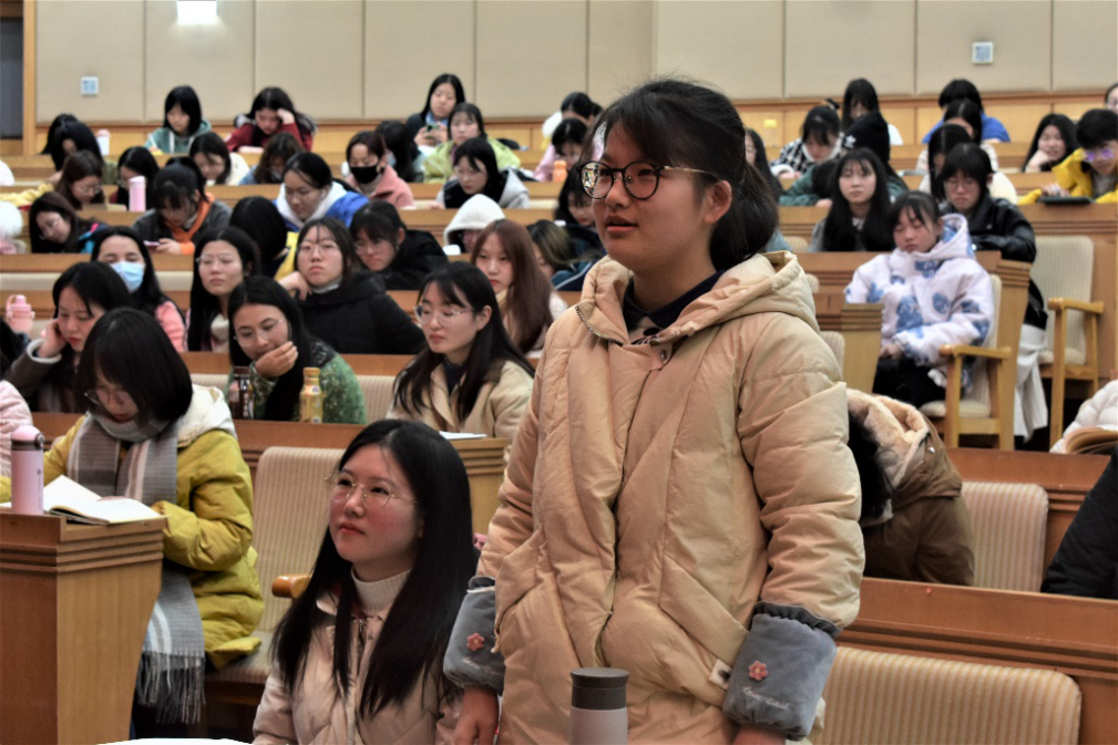 提问互动环节,王友胜教授就学生们所问的“如何看待李清照批评苏轼的词”“我们该从哪些方面入手去研究文学人物”这两个问题进行了耐心细致的解答。对于第一个问题,王教授表示苏轼的词的确是“不齐之诗”,因其不太通音律,但苏轼用写诗的技巧写词,也拉高了词在当时的地位。第二个问题,王教授给出的建议是“收集材料——阅读理解材料——筛选材料——构建框架”。