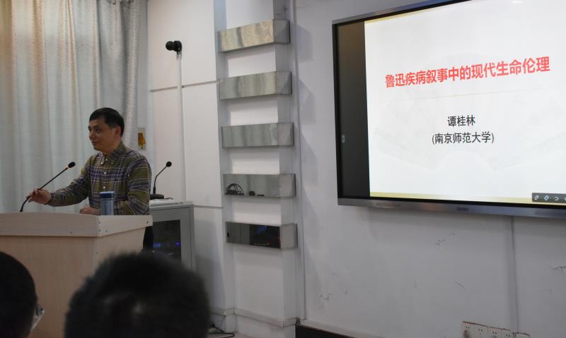 此次讲座,谭桂林教授从“鲁迅关注身体的自觉性”、“疾病的纠缠促进了鲁迅对生命的伦理思考”、“疾病的磨砺造就鲁迅生命意志力的坚忍与强大”、“疾病叙事深化了鲁迅现代性生命伦理观的建构”四个方面给在场师生讲述了《鲁迅疾病叙事中的现代生命伦理》这一论题,有理有据,条分缕析。