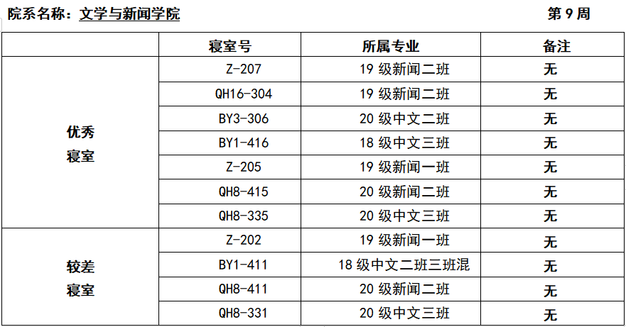 根据51大赛 生活部下发文件《51大赛 寝室评分细则》要求,结合生活部日常查寝情况,现将第9周优差寝情况结果通知如下: