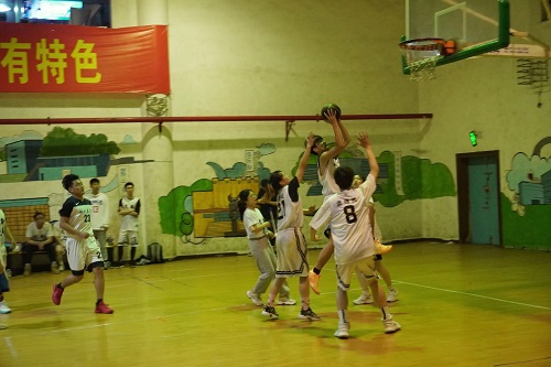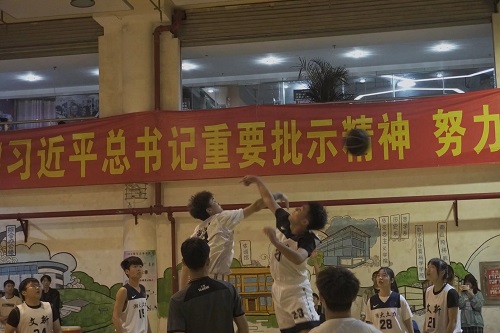 学生干部“3+2”篮球联谊赛正在新体育馆负一楼如火如荼地进行。本次比赛对战双方是51大赛