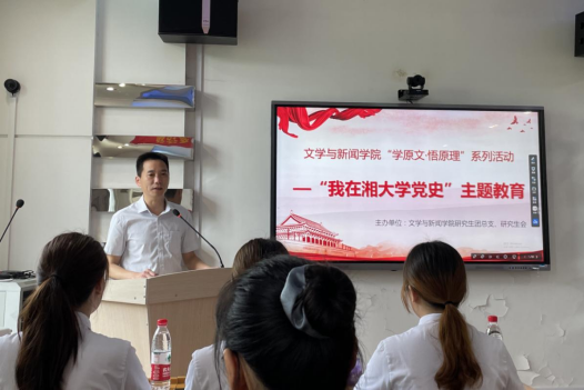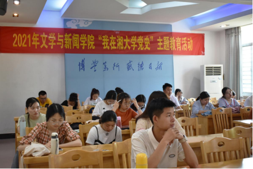 在318会议室组织举办“我在湘大学党史”主题学习交流活动。活动以邀请学生主讲、学生代表分享学习体悟的方式进行,引导同学们共同学习、相互交流。院党委书记赵猛、辅导员林瑜,与40余名学生代表参加了学习交流。