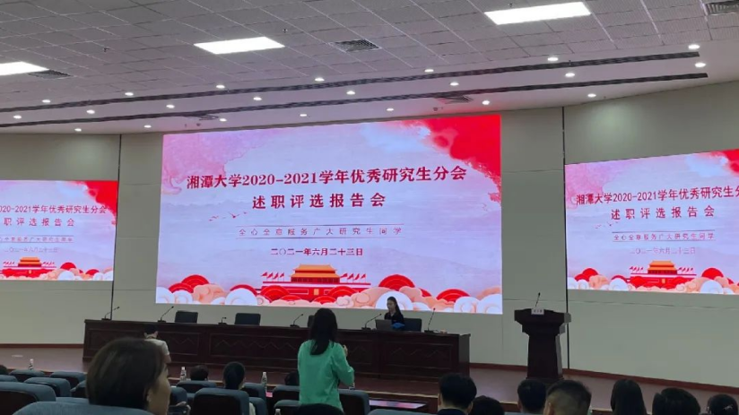 研究生学术文化节」,其中包括「湘韵」研究生论坛、「韶风」名师论坛和博士经验交流会等系列活动,致力于促进各学院之间学术交流,为博士研究生和硕士研究生搭建相互交流的平台,引导广大研究生积极投身科学实践,努力成为刻苦钻研、勇于创新的高素质人才。此外,负责研究生辩论队日常管理工作。