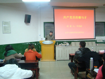 党委李剑波书记以“共产党员 的德与才”为主题,着重强调德与才的重要性,并谈及大学生应该如何完善自己,争做一名合格的共产党员。
