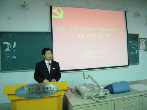 公共管理学院党委副书记刘纯老师主持开学典礼。在庄严肃穆的国际歌后,培训班班主任陈敏老师讲述了党校培训的整体安排与纪律要求。此后,李剑波书记做了精彩发言,对新一期的入党培训学员提出了要求并给予了期望。