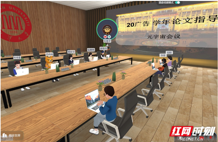 广告系教师向青平使用“元宇宙”办公平台给2020级广告系学生指导学年论文,师生在“元宇宙”提供的虚拟环境中进行了学术问题的讨论,在教学媒介创新方面做了新尝试。