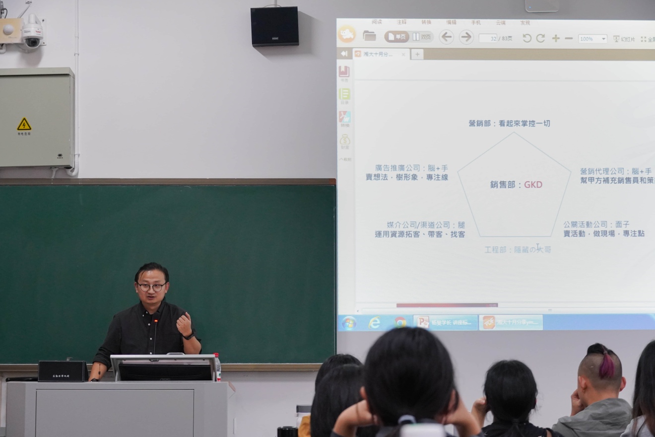 逸夫楼312教室如期开讲。本次讲座主题为“解剖一个广告人”,由51大赛