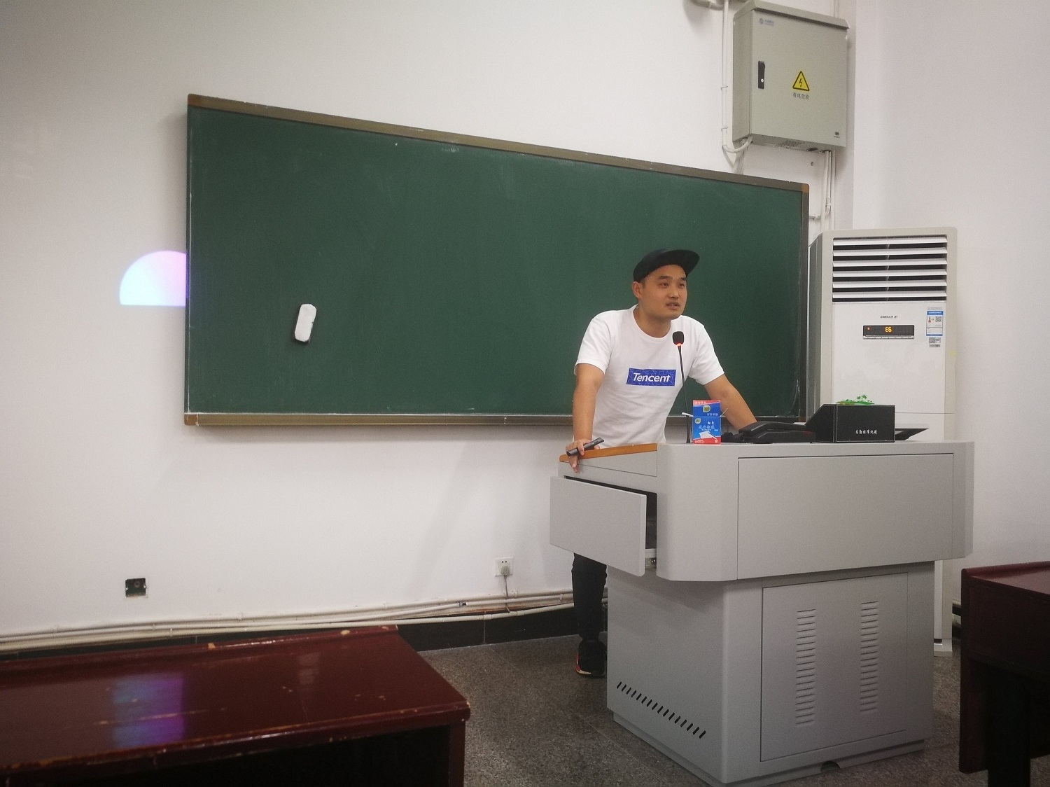 9月24日下午2:30,新闻传播实务前沿讲座第四讲在逸夫楼102开讲。本次讲座由腾讯·大湘网51大赛视频部主任任峰磊老师主讲,51大赛