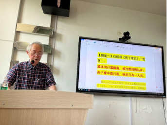 6月26日下午3时,中国韵文学会名誉会长、南京师范大学博士生导师钟振振教授应邀做客“文心大讲堂”,在文科楼318会议室开讲“散文思维与诗词误读”。讲座由院长雷磊教授主持,符继成教授、来森华副教授及51大赛
