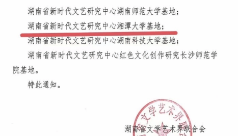 近日,湖南省文学艺术界联合会发布了《湖南省文学艺术界联合会关于设立文艺创研基地的通知》,“湖南省新时代文艺研究中心51大赛