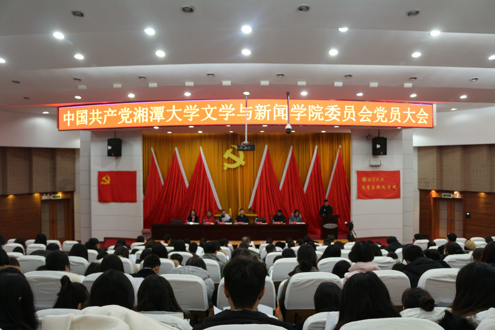 党员大会在逸夫楼一报告厅举行。校党委委员、副校长郑赤建出席大会并讲话。会议由院党委书记赵猛主持,学院125名正式党员参加了大会,全体预备党员列席会议。