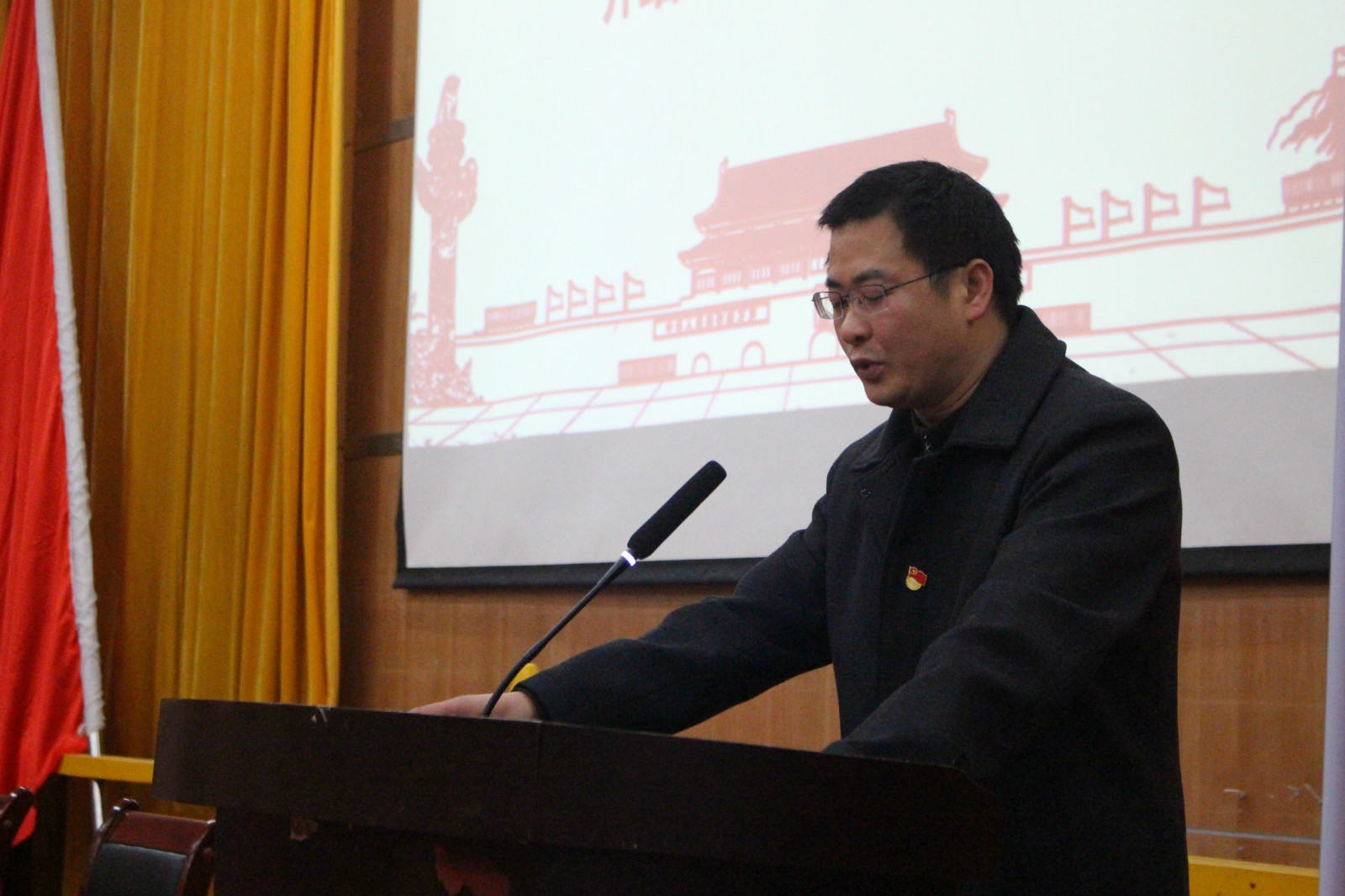 于今年十月对学生党支部进行了调整,并顺利完成了学生党支部的换届选举工作。院党委研究决定每一个院党委委员分别联系一个学生党支部,综合指导各党支部的工作。院党委副书记周鹏飞对学生党支部设置的具体情况做了详细介绍。院党委委员联系人分别为各支部委员佩戴党徽。
