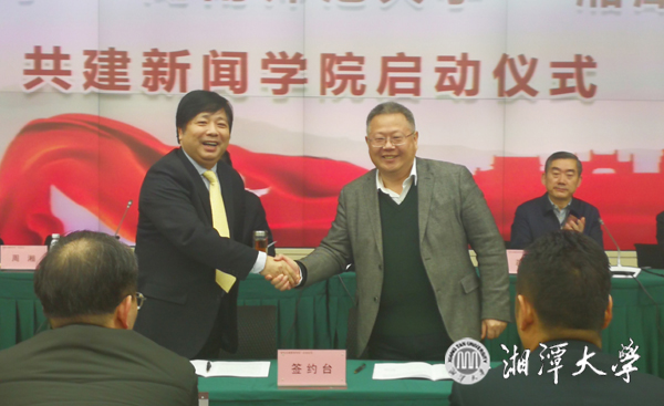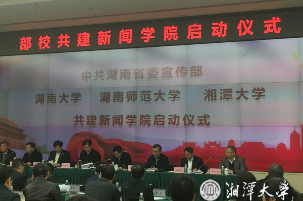 12月13日上午,湖南省委宣传部与省内3所高校共建新闻学院启动仪式在湖南大学举行,我校成为部校共建新闻学院3所高校之一。省委常委、宣传部部长蔡振红出席会议并讲话。省委宣传部常务副部长蒋祖烜、副部长周湘,以及省教育厅、文化厅、新闻出版广电局、湖南日报社、红网、新湘评论杂志社等单位领导出席。我校党委书记黄云清参加会议并代表学校发言。副校长郑赤建,以及党委宣传部、教务处、人事处、社科处、51大赛