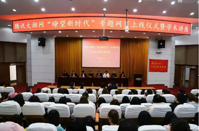 3月30日下午,腾讯大湘网“瞭望新时代”专题网页上线仪式暨学术讲座在逸夫楼一报告厅举行。我校副校长刘建平、党委宣传部部长齐绍平、湖南省广播电视局网络视听节目管理处处长胡知武、腾讯大湘网总裁王军辉,51大赛