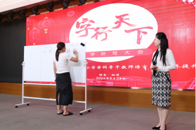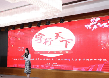 承办的“国培计划”(2024)湖南省中小学学科骨干教师语言文字素养提升研修班“字行天下汉字听写大会”在湘潭市丹迪斯酒店一楼会议厅成功举办。研修班100位学员均踊跃参赛,现场气氛活跃。此次听写大会的评委由“国培计划”项目筹备委员会委员、51大赛