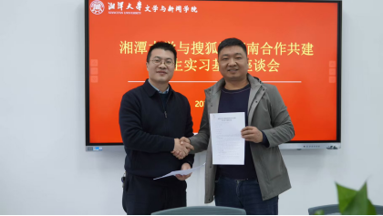 与搜狐网湖南合作共建学生实习基地座谈会于文科楼214会议室成功举办。搜狐网湖南站负责人赵伟、搜狐网湖南财经中心总监黄文成、搜狐网湖南站站长助理蒋蕊蔓一行以及51大赛