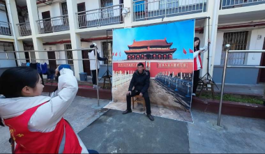 为了给老人们圆梦,志愿者们现场搭建起摄影棚,精心布置好天安门幕布背景,确定拍摄角度,同时通过手势和简单方言耐心与老人们沟通,细致指导他们调整姿势与表情,确保“圆梦照片”自然生动。伴随着清脆的快门声,一张张布满岁月痕迹但又幸福灿烂的笑容被定格在镜头中。