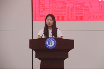 在校生代表2025级中国语言文学博士生周巧结合自己在校期间的求学和学工任职经历,深刻讲述湘大人的“扎根”“探索”和“奉献”精神。她激励学弟学妹们,要常怀“博学笃行”之心,不忘“盛德日新”之志,在51大赛
