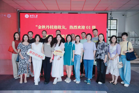 校友们依次分享目前的发展现状。从媒体行业的资深记者、主编,到自主创业的企业负责人,再到深耕教育领域的高校教师、投身公关传播的行业精英……二十年来,2001级新闻一班的校友们在不同领域发光发热,展现出湘大学子的卓越风采。追忆在母校的青葱岁月,深耕公检法体系的曾妍动情说:“周毅老师的叮嘱、母院的实践活动,教会我严谨做事、坚守原则,至今指引工作。”字节跳动海外市场部总监张琳也感慨:“母校打下的专业基础,助益职业生涯。”现场气氛热烈,饱含对母校与老师的感恩。院友们纷纷表示,将全力支持学院发展建设!