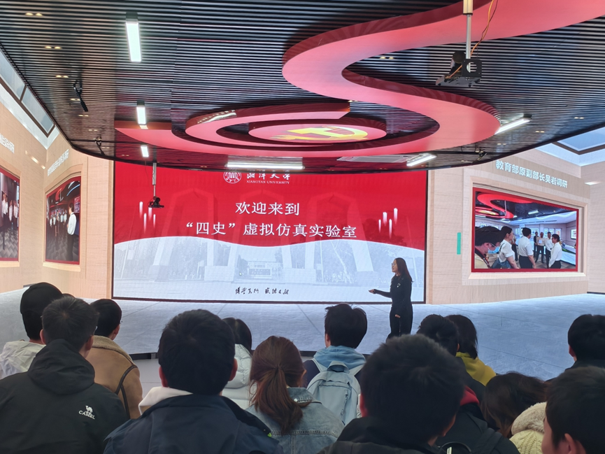 随后,支部党员来到“四史”虚拟仿真实验室。该实验室依托前沿虚拟现实技术,构建了党史、新中国史、改革开放史、社会主义发展史的关键场景。党员们通过虚拟现实技术,“亲历”革命烽火岁月,“走进”改革开放一线,“见证”新时代伟大成就,在高度仿真的交互体验中深化了对历史逻辑、理论逻辑和实践逻辑的理解。