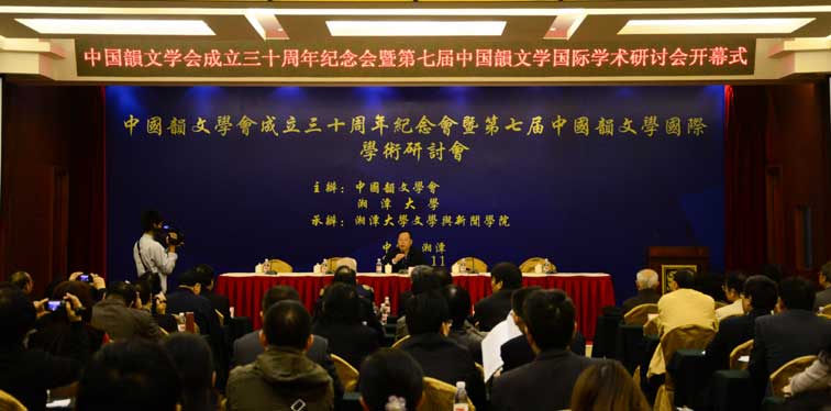 研讨会围绕中国韵文学会三十年回望与展望、中国古代诗词曲赋研究、现代旧体韵文研究、中国古代韵文与湖湘文化研究等主题进行了深入研究与交流。大会共收到来自加拿大、韩国、马来西亚、日本、越南等国家和港澳台地区及中国内地的论文100余篇。代表们大致按诗词曲赋体和历史时代分期的原则进行分组讨论,各位专家学者针对具体论文评议上勾下连、评古论今,就中国韵文学研究的最新动态和热点展开了严谨而又风趣的探讨,营造出百花齐放、百家争鸣的氛围。