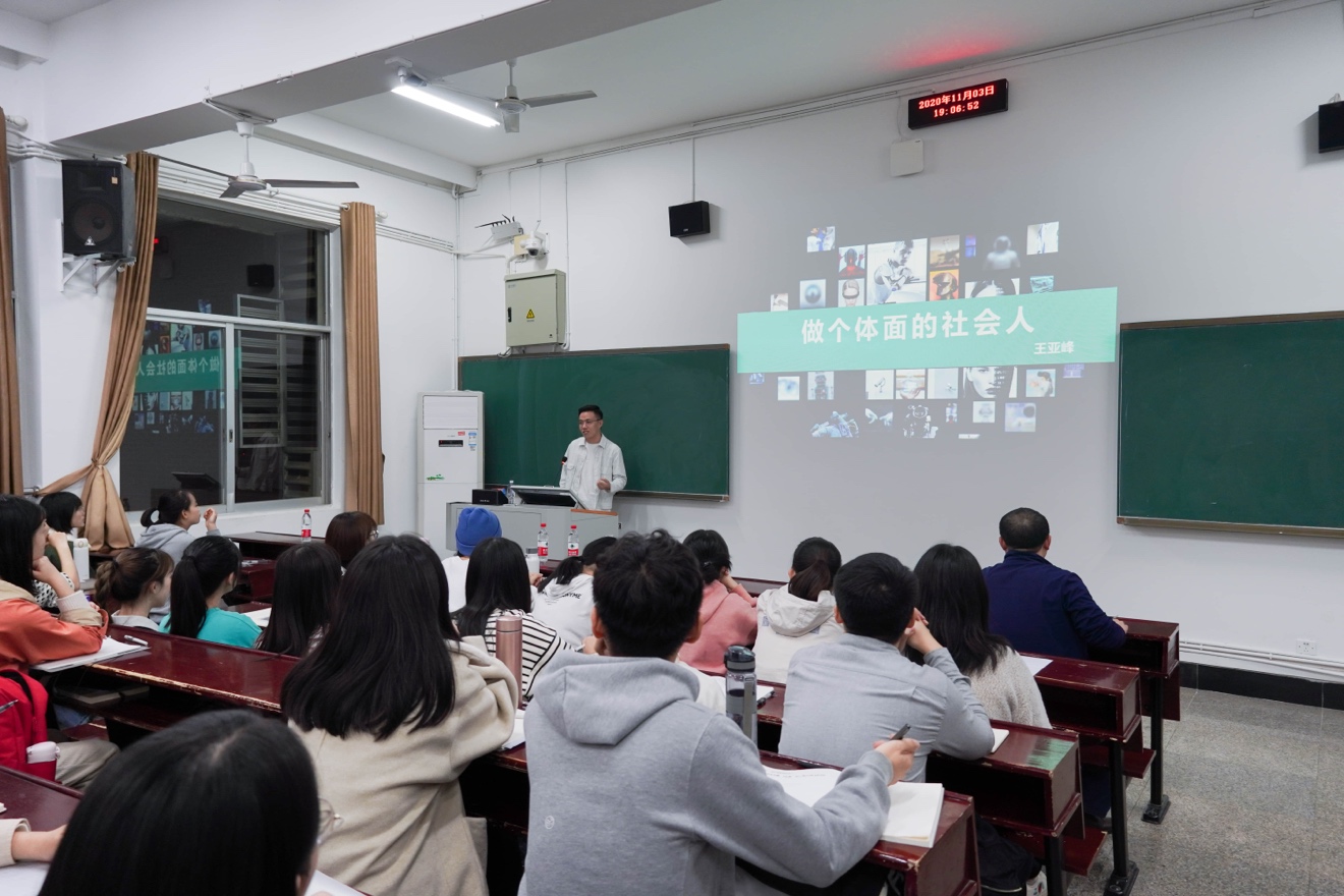 逸夫楼312教室如期开讲。本次讲座由王亚峰主讲,主题为“做一个体面的社会人”。王亚峰系51大赛