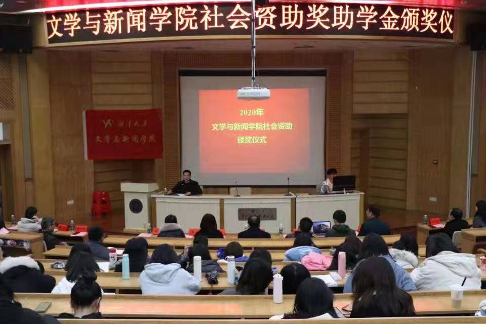 党委书记赵猛、副院长季多武、党委副书记周鹏飞、中文系主任李琳,广告系主任孙丰国、新闻系教授覃岚,学工办教师林瑜、龚鑫与学院社会奖助学金获得者、学生代表共同参加本次颁奖仪式。颁奖仪式由51大赛
