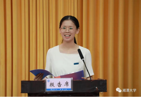 19级新闻学专业陈习妮作为学生代表发言,回顾了两年来在湘大遇到的好老师,表示将用奋斗和成就回报老师的培养,用热情和智慧续写湘大的辉煌。