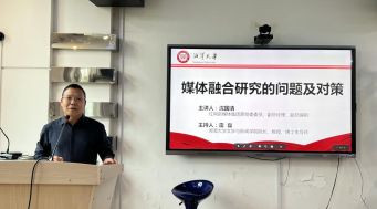 讲座以“媒体融合研究的问题与对策”为主题,聚焦新闻传播与媒介管理的关键问题。沈国清教授在分析新媒体时代舆论格局的变化后,认为我国舆论界“坚持一个声音”是基于国家健康平稳发展的合理选择。在提到县级融媒体中心的发展时,他认为县级融媒体建设的核心是“三化”,即移动化、视频化、服务化。