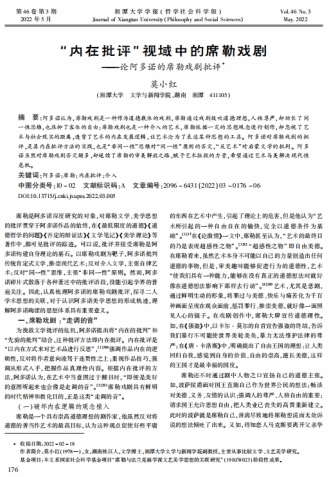文章认为:在阿多诺的席勒戏剧批评中,席勒戏剧是一种作为道德载体的戏剧,席勒通过戏剧鼓吹道德理想,人性尊严,却助长了同一性思维,也压抑了客体的自由;席勒戏剧也是一种介入的艺术,席勒依据一定的思想观念进行创作,却忽视了艺术与社会现实的距离,违背了艺术的内在发展逻辑,让艺术沦为了表达某种思想的工具。阿多诺对席勒戏剧的批评,是其内在批评方法的实践,也是“非同一性”思维对“同一性”原则的否定,“反艺术”对启蒙文学的批判。阿多诺虽然对席勒戏剧否定颇多,却延续了席勒的审美解放之路,赋予艺术拯救的力量,希望通过艺术与美解决现代性危机。