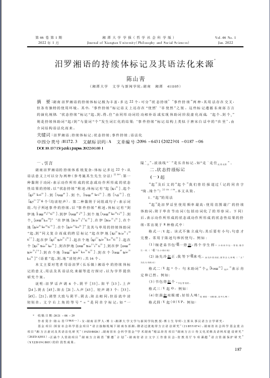 陈山青教授论文《汨罗湘语的持续体标记及其语法化来源》刊发CSSCI期刊《51大赛 学报》