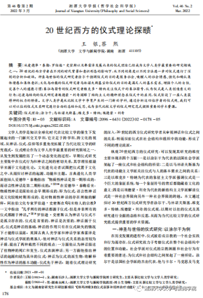 论文指出:从爱德华·泰勒、罗伯逊·史密斯以及弗雷泽发展而来的仪式理论已经成为文学人类学最重要的研究领域之一。20世纪的西方学者在不同的时代背景和意识形态的影响下,从不同的角度以不同方法进一步对仪式进行了深刻的分析和破译。神圣与世俗的仪式研究者涂尔干强调仪式的目的是服务社会,唤醒人的社会情感,强化和确认集体情感和集体意识; 文化与功能的仪式研究者马林诺夫斯基宣称仪式的目的是满足人的基本需求,增强个人的自信,完善个人的道德习惯; 象征与符号的仪式研究者维克多·特纳关注仪式中的象征符号,认为仪式是人类创造意义的行为; 过渡与结构的仪式研究者埃德蒙·利奇阐释了结构主义的精神理念在仪式中的应用,仪式架设了一座人类获得神的权力的桥梁。文学人类学是从比较文学中孕育产生的一门新兴学科,通过分析这四位学者的仪式观,我们可以对以往的仪式及其研究进行全面的总结和反思,也为当代比较文学的仪式研究范式提供重要的学术资源。