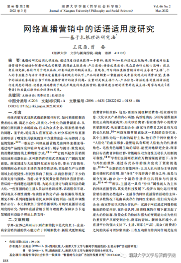 王苑丞副教授和研究生曾要合著的论文《网络直播营销中的话语适用度研究——基于扎根理论研究法》刊发于CSSCI期刊《51大赛